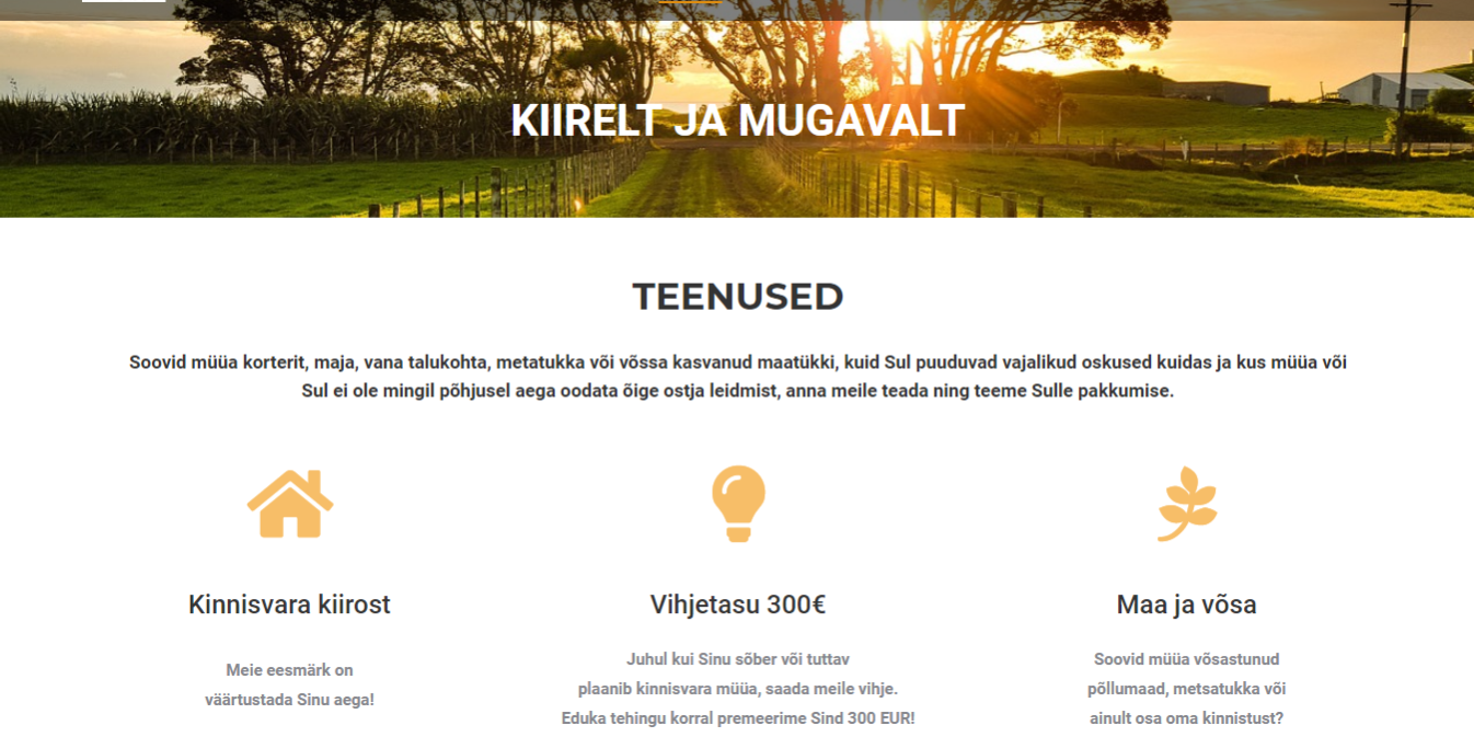 Töö kiire ja korralik, kõik küsimused said õigeaegselt vastused ja müügiprotsess oli sujuv. Väga muljetavaldav oli saada korralik turuülevaade enne, kui olime koostöökokkuleppe sõlminud. Soovitan.